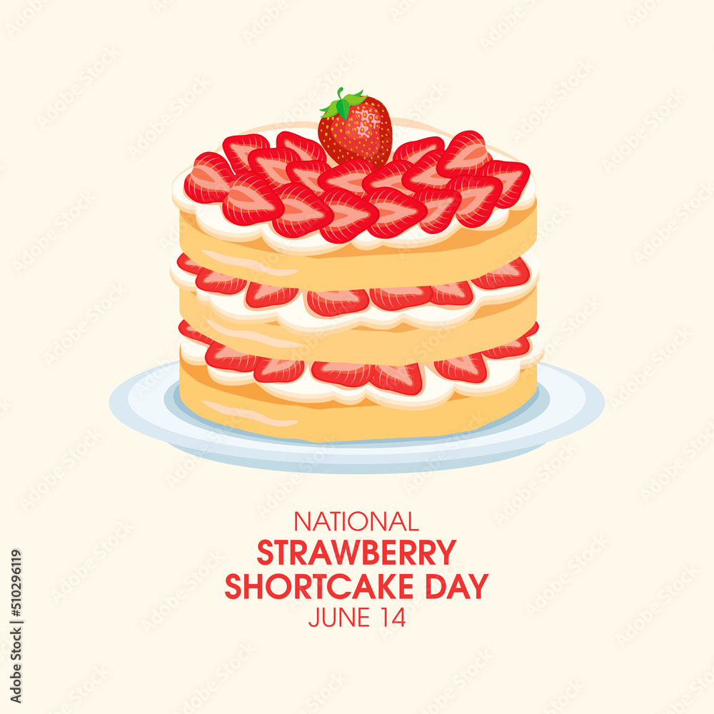 National Strawberry Shortcake Day Vector Sweet Whole Cake With Strawberries And Whipped Cream Vector Layer Cream Cake Drawing June 14 Important Day Stock Vector Adobe Stock
